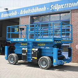 Wir besitzen um die 30 Scherenarbeitsbühnen, darunter elektrobetriebene, dieselbetriebene und dieselbetriebene Raupenscherenarbeitsbühne. An unseren Standorten in Damme, Neuenkirchen-Vörden und Bakum sind wir Ihr zuverlässiger Partner für die Vermietung und den Verleih von Autokranen, Hebebühnen und Teleskopladern.